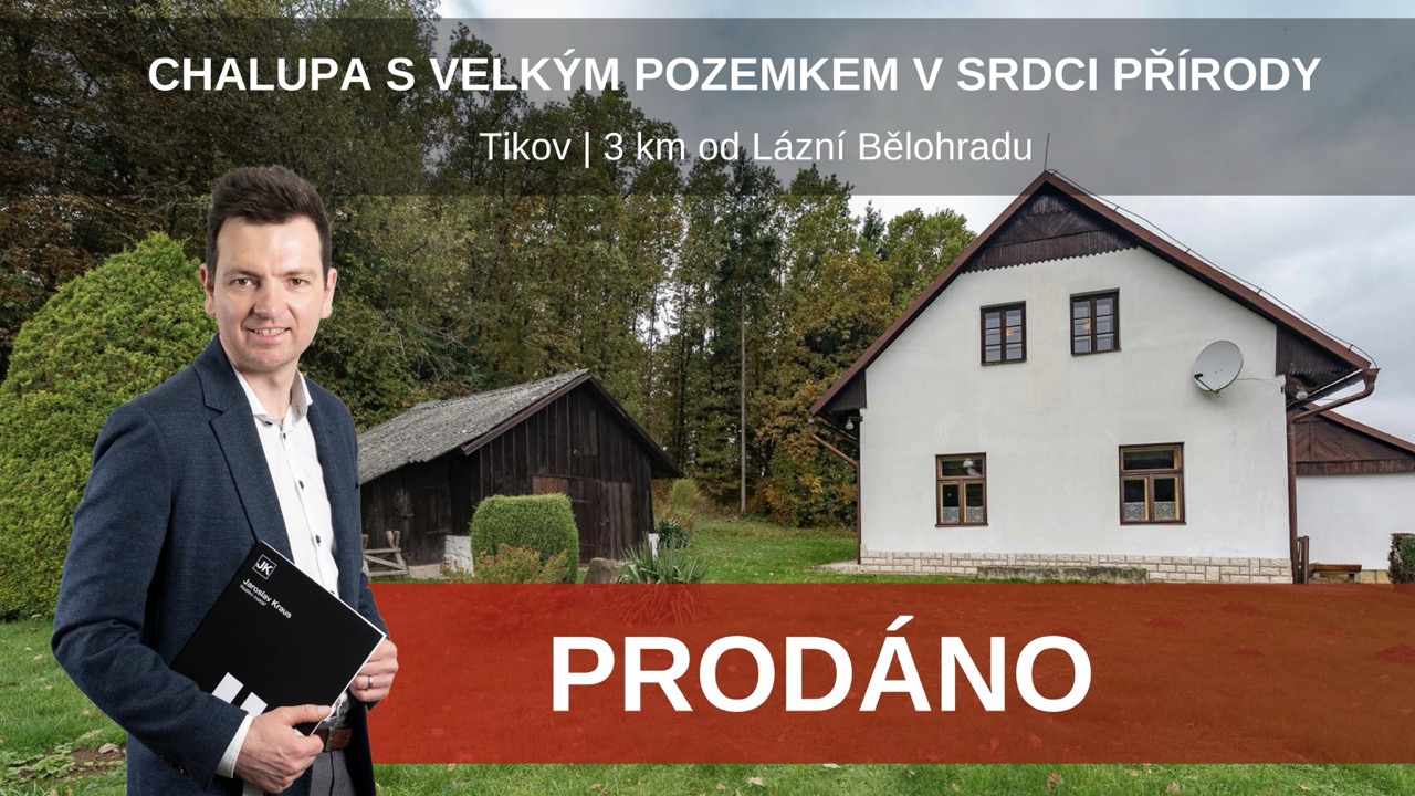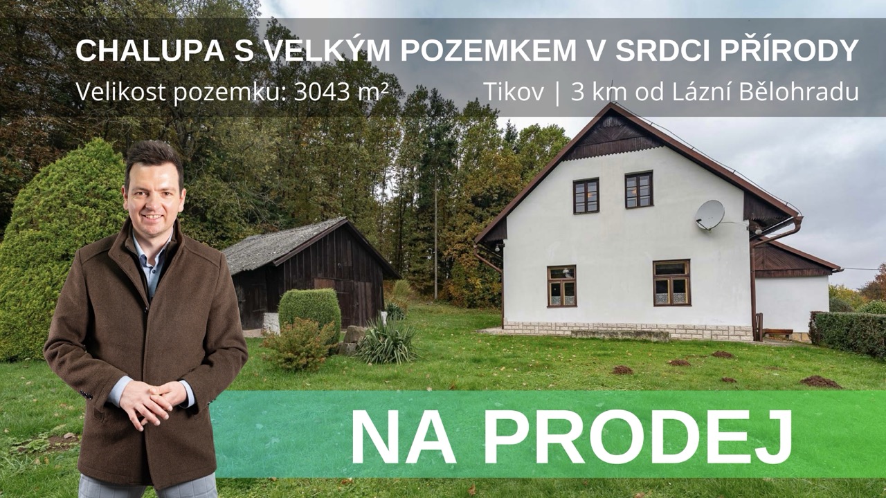 V neprůjezdné osadě Tikov, jen 3 km od Lázní Bělohradu a 7 km od Hořic, na vás čeká zděná chalupa s rozlehlým pozemkem o velikosti 3 043 m², ideální útočiště pro všechny, kdo touží po soukromí, prostoru a spojení s přírodou. Dům je postavený z plných pálených cihel o tloušťce 50 cm, s přístavbou z plynosilikátu.
