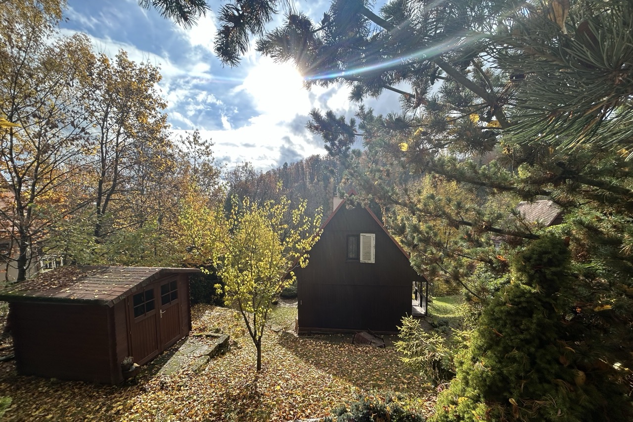 Chata stojí na pozemku o velikosti 917 m², hned u lesa, kam si můžete kdykoli vyrazit na houby nebo borůvky. Za domem se rozkládá zahrada se zahradním domkem a posezením, další část zahrady je i před chatou. Ideální prostor pro relaxaci, grilování nebo tvoření malého zeleného ráje podle vlastních představ.