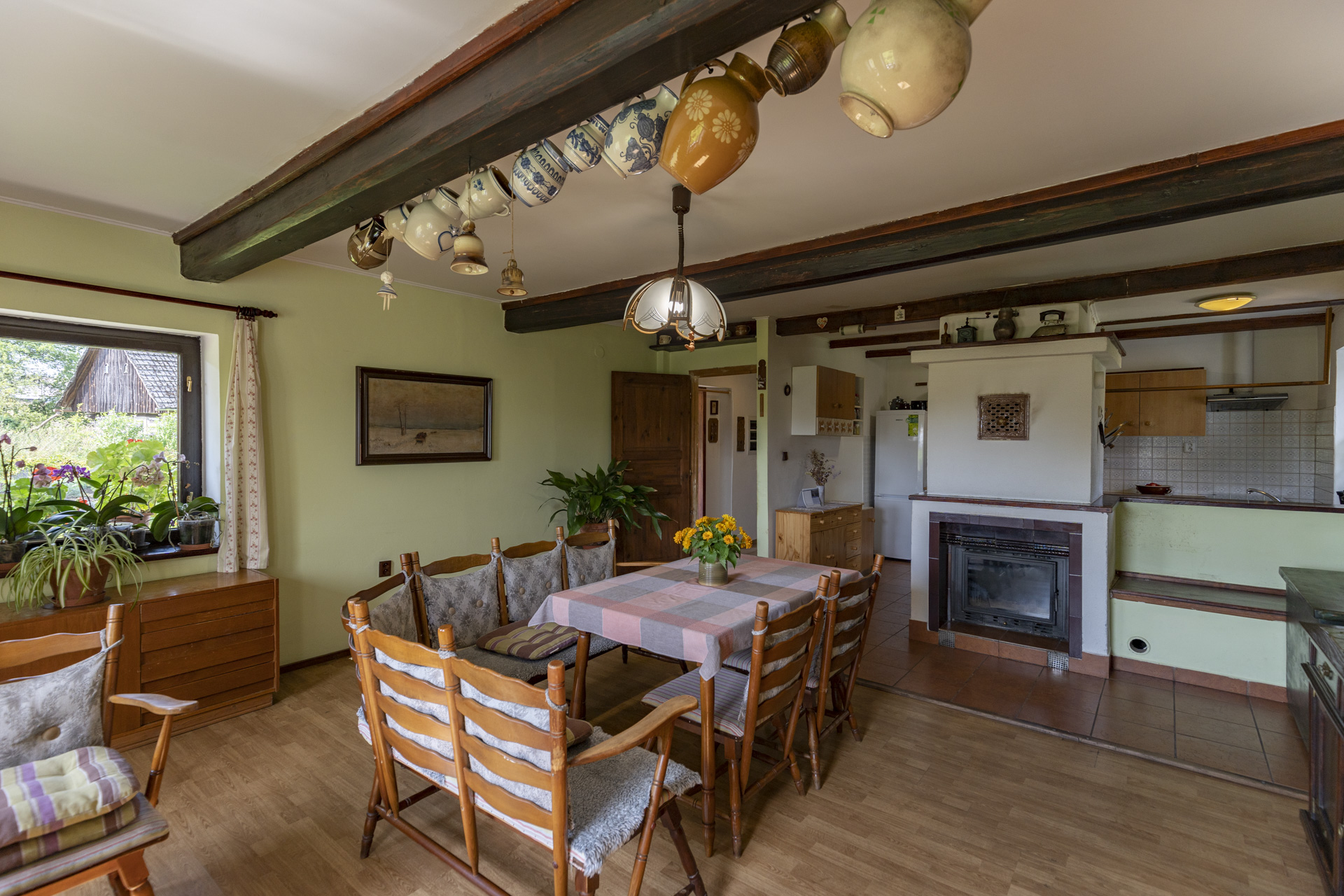 Dispozice domu je 3+kk s obytnou plochou 95 m², ke kterému patří ještě venkovní kůlna o velikosti 5 m². Veškeré rekonstrukce byly provedeny po r. 2008. Od toho je tu elektroinstalace, podlahy, koupelna, dřevěná okna a částečné zateplení. Vytápění zajišťují krbová kamna s krbovou vložkou. V nejbližší době vás bude čekat pouze oprava střechy, případně výměna krytiny. Pokud by vám bylo přízemí malé, nabízí se zde i možnost vybudovat obytné podkroví.