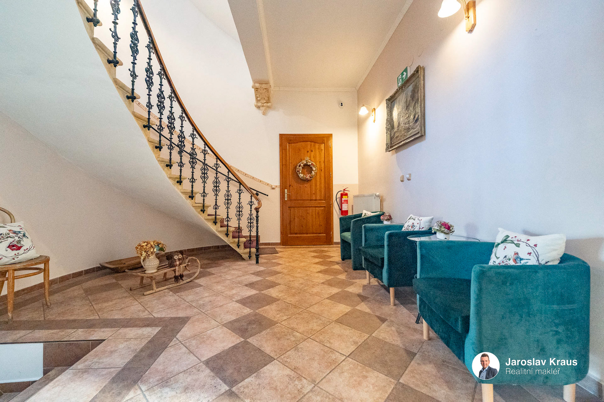 Součástí společných prostorů jsou vstupní haly, které zaujmou schodištěm s dekorativním kovovým zábradlím, které podtrhuje reprezentativní charakter celého objektu. Dále tu najdete výtah a v každém mezipatře jsou odpočinkové zóny s posezením.