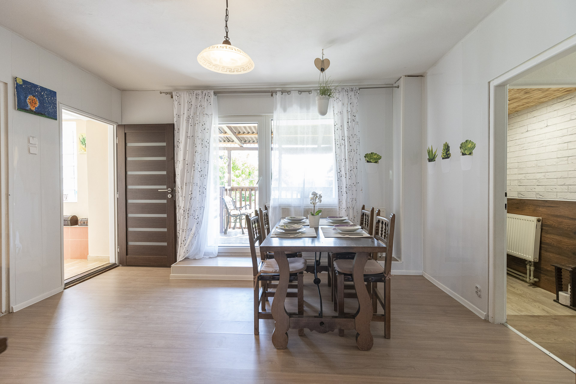 Dům je velmi prostorný a pyšní se dispozicí 5+1 s aktuální obytnou plochou 167 m2 s možností vybudování dalších dvou pokojů v podkroví o celkové velikosti 50 m2.