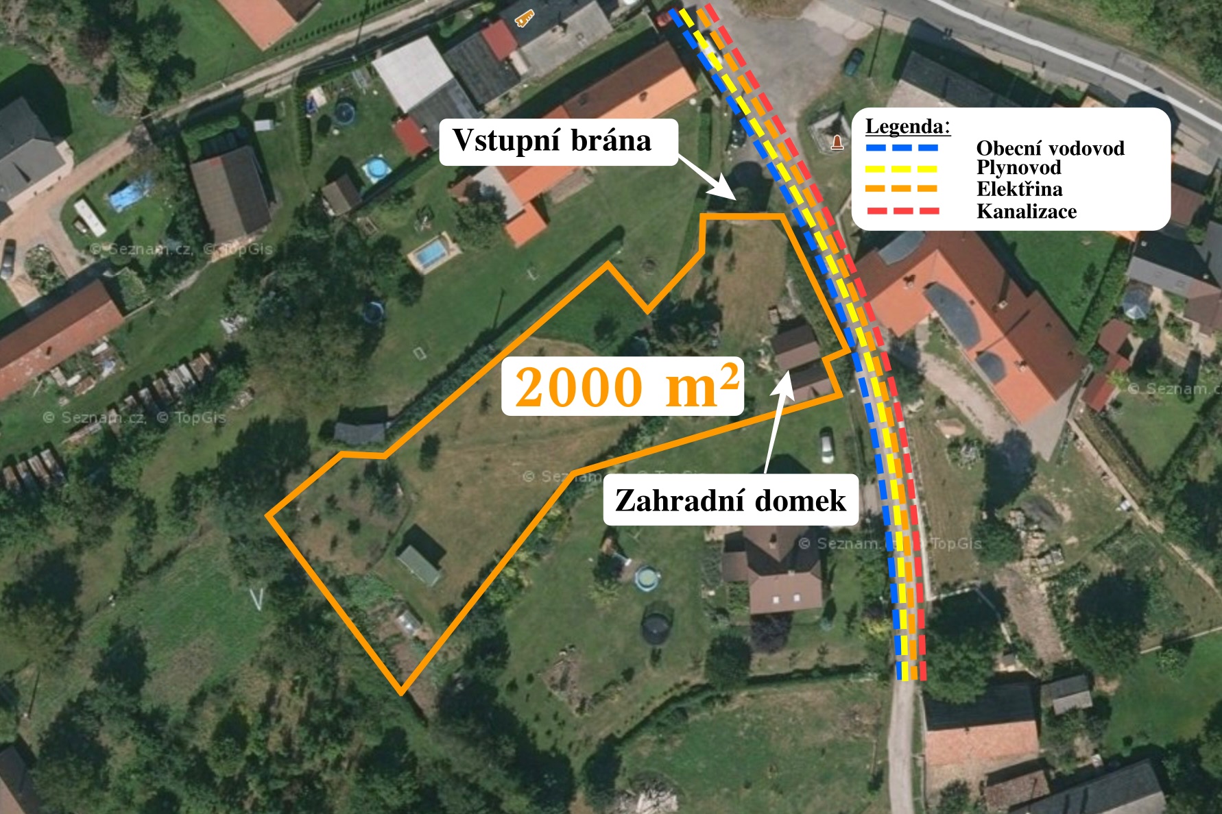 Přímo před pozemkem vedou všechny inženýrské sítě, na které se můžete napojit (elektřina, vodovod, kanalizace i plynovod).